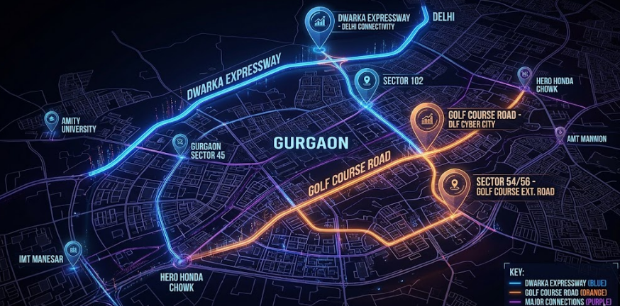 Golf Course Extension Road The premium address of Gurgaon. Wide roads, excellent infrastructure, and luxury living.